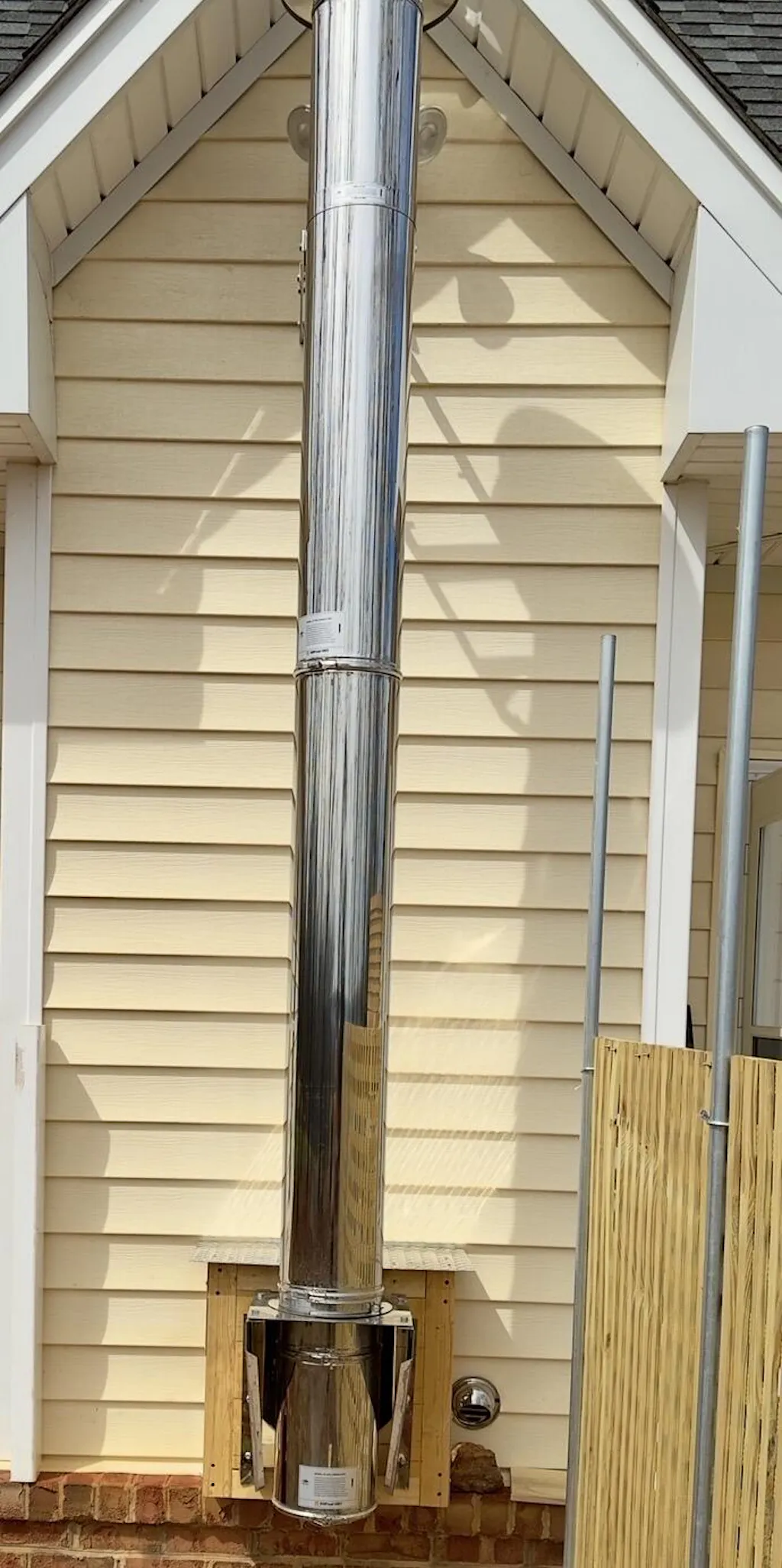 An extended roof brace or other support must be used for every 5 feet of chimney above the roof (if your chimney extends 12 feet above your roof you need 2 roof support braces).
