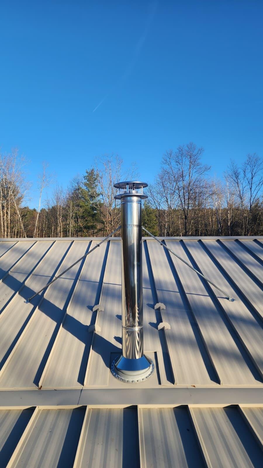 The Flat Top Chimney Cap with 3/4" Spark Screen tops off the chimney system to keep rain and snow, debris, and animals from getting inside the chimney.